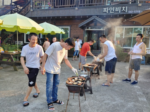 31명이 참여하여 시원한 물놀이, 맛있는 고기 파티가 있었습니다