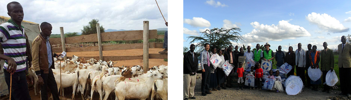 케냐 카지아도 지역의 빈곤가정에 염소새끼 분양을 통해